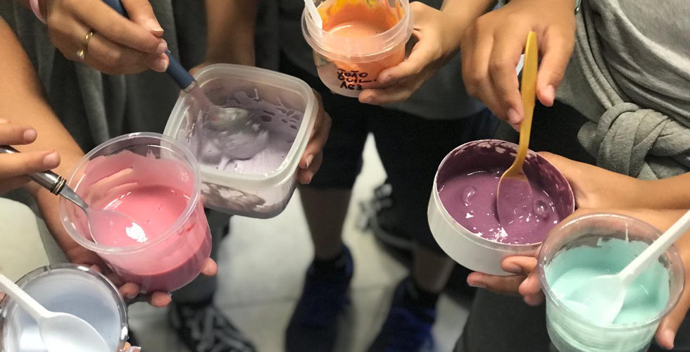 Arte é fundamental. E fundamentos estão na base da vida... Acertar, tentar e errar fazem parte, assim como estabelecer padrões para si. Nas aulas sobre o estudo das cores, os alunos do sexto ano tiveram a oportunidade de experimentar os padrões pessoais ainda não estão estabelecidos. A criatividade teve espaço e cada aluno pode estabelecer suas regras, seus padrões. Produzimos cor! Laranja, Verde e Roxo a partir das cores primárias. Algumas mais laranjas que outras ou menos verdes, mas cor! A experiência seguiu com a produção de slimes. E que produção! Aprendemos juntos como dosar os ingredientes! Quando insistir, quando esperar, quando é necessário mais de um dos ingredientes para funcionar. Dosamos as partes. Chegamos ao equilíbrio. E assim que aprendemos não só sobre a arte mas também sobre a vida.